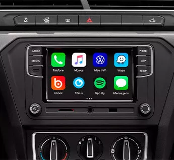 O sistema multimídia infotainment possui tela colorida de alta definição e possui conectividade com smartphones por meio da tecnologia App-Connect.